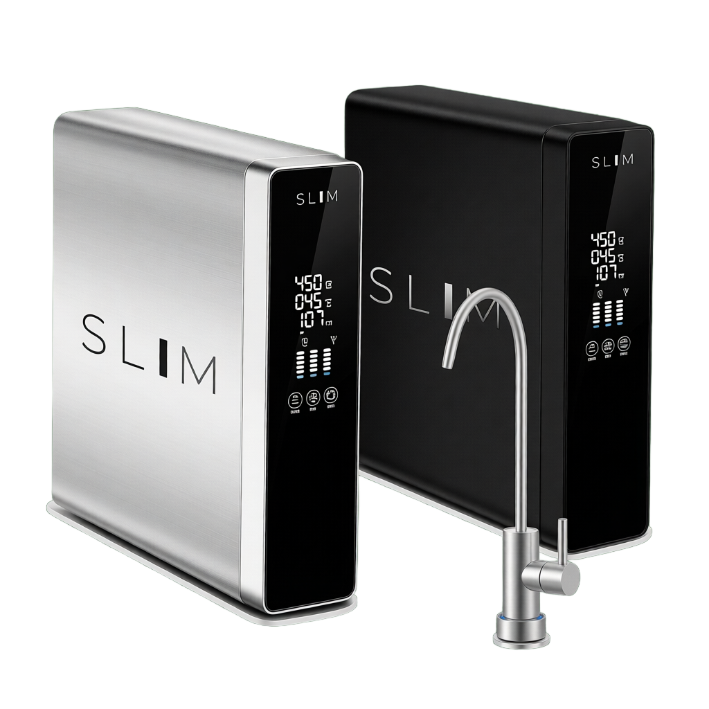 Sistema premium de ósmosis inversa de última generación. Diseño ultracompacto, alta producción y control digital de la calidad del agua.